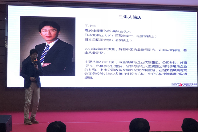 【嘉润动态】问小牛律师、李琳律师受邀进行“创新型企业架构设计及融资等法律实务”主题讲座